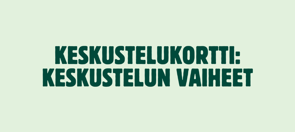 Tämä keskustelukortti toimii tiiviinä muistilistana keskustelun vaiheista ja niiden aikana huomioitavista asioista.